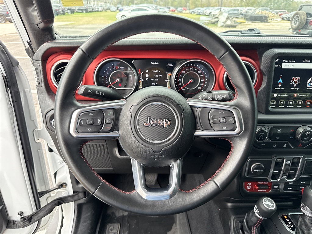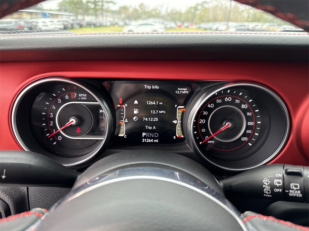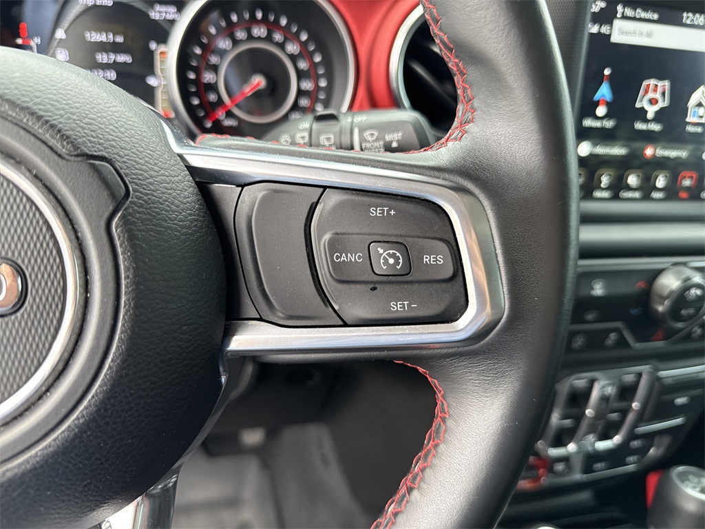 adio, Radio: Uconnect 4C Nav w/8.4" Display, Roadside Assistance & 9-1-1 Call, SiriusXM Traffic Plus, and SiriusXM Travel Link), LED Lighting Group (Daytime Running Lamps LED Accents, Front LED Fog Lamps, LED Reflector Headlamps, and LED Taillamps), Quick Order Package 24R, Safety Group (Blind Spot & Cross Path Detection and ParkSense Rear Park Assist System), Steel Bumper Group (Steel Front Bumper and Steel Rear Bumper), Trailer Tow & HD Electrical Group (240 Amp Alternator, 7 & 4 Pin Wiring Harness, 700 Amp Maintenance Free Battery, Auxiliary Switches, and Class II Receiver Hitch), 21.5 Gallon Fuel Tank (DISC), 4-Wheel Disc Brakes, 4.10 Rear Axle Ratio, 8 Speakers, ABS brakes, Air Conditioning, Alloy wheels, AM/FM radio: SiriusXM, Apple CarPlay/Android Auto, Automatic temperature control, Body Color 3-Piece Hard Top, Body Color Fender Flares, Brake assist, Compass, Delay-off headlights, Driver door bin, Driver vanity mirror, Dual front impact airbags, Dual front side impact airbags, Electronic Stability Control, Freedom Panel Storage Bag, Front anti-roll bar, Front Bucket Seats, Front Center Armrest w/Storage, Front dual zone A/C, Front fog lights, Front reading lights, Fully automatic headlights, Garage door transmitter, Heated door mirrors, Illuminated entry, Integrated roll-over protection, Leather steering wheel, Low tire pressure warning, MOPAR All-Weather Floor Mats, Non-Lock Fuel Cap w/o Discriminator, Occupant sensing airbag, Outside temperature display, Panic alarm, ParkView Rear Back-Up Camera, Passenger door bin, Passenger vanity mirror, Performance Suspension, Power door mirrors, Power steering, Power windows, Premium Cloth Low-Back Bucket Seats, Radio data system, Radio: Uconnect 4 w/7" Display, Rear anti-roll bar, Rear reading lights, Rear Window Defroster, Rear Window Wiper/Washer, Remote keyless entry, Remote Start System, Security system, Speed control, Split folding rear seat, Steering wheel mounted audio controls, Tachometer, Telescoping steering wheel, Tilt steering wheel, Traction control, Trip computer, Variably intermittent wipers, Voltmeter, and Wheels: 17" x 7.5" Polished w/Black Pockets.