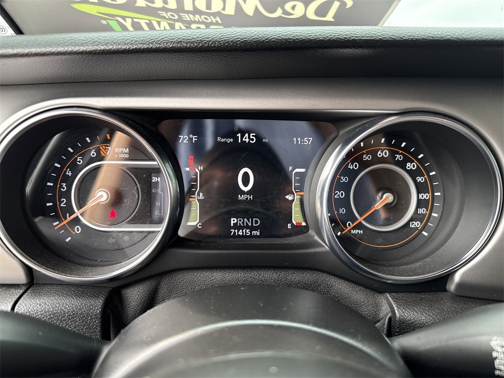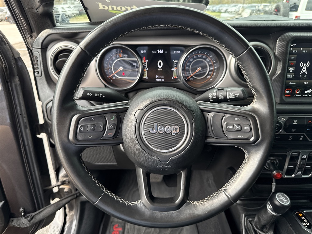 Quick Order Package 25Q 80th Edition (DISC) (220 Amp Alternator, 7.0" Touchscreen Display, Annodized Gunmetal I/P Bezels, Automatic Headlamps, Berber Floor Mats w/80th Anniversary Tag, Body Color Fender Flares, Body Color/Accent Color Grille, Cloth Bucket Seats w/80th Anniversary Tag (DISC), Cluster 7.0" TFT Color Display, Daytime Running Lamp System, Deep Tint Sunscreen Windows, Front 1-Touch Down Power Windows, Gray/Black Jeep Badges, Gray/Black Trail Rated Badge, Heavy Duty Suspension w/Gas Shocks, Jeep 80th Anniversary Badges, Jeep 80th Anniversary Console Badge, Jeep 80th Swing Gate Plaque, Leather Wrapped Steering Wheel, Light Tungsten Interior Accents, Mold In Color Bumper w/Neutral Gray, Power Heated Mirrors, Radio: Uconnect 4 w/7" Display, Remote Keyless Entry, Security Alarm, Speed Sensitive Power Locks, Sun Visors w/Illuminated Vanity Mirrors, and Wheels: 18" x 7.5" Granite Crystal Aluminum (DISC)), Safety Group (Blind Spot & Cross Path Detection, Injection Molded Black Rear Bumper, LED Taillamps, and ParkSense Rear Park Assist System), Technology Group (Air Conditioning w/Auto Temperature Control, Air Filtering, Apple CarPlay, For More Info, Call 800-643-2112, Google Android Auto, GPS Antenna Input, Integrated Center Stack Radio, SiriusXM Radio Service, SiriusXM Satellite Radio, and USB Host Flip), 3.45 Rear Axle Ratio, 4-Wheel Disc Brakes, 8 Speakers, ABS brakes, Air Conditioning, AM/FM radio, Anti-Spin Differential Rear Axle, Aux Battery, Black 3-Piece Hard Top, Brake assist, Cloth Low-Back Bucket Seats, Compass, Delay-off headlights, Driver door bin, Driver vanity mirror, Dual front impact airbags, Dual front side impact airbags, Electronic Stability Control, Freedom Panel Storage Bag, Front anti-roll bar, Front Bucket Seats, Front Center Armrest w/Storage, Front fog lights, Front reading lights, Integrated roll-over protection, Low tire pressure warning, Manufacturer's Statement of Origin, No Soft Top, Non-Lock Fuel Cap w/o Discriminator, Normal Duty Suspension, Occupant sensing airbag, Outside temperature display, ParkView Rear Back-Up Camera, Passenger door bin, Passenger vanity mirror, Power steering, Radio data system, Radio: Uconnect 3 w/5" Display, Rear anti-roll bar, Rear reading lights, Rear Window Defroster, Rear Window Wiper/Washer, Remote Proximity Keyless Entry, Speed control, Split folding rear seat, Steering wheel mounted audio controls, Stop-Start Dual Battery System, Tachometer, Telescoping steering wheel, Tilt steering wheel, Traction control, Trip computer, Variably intermittent wipers, and Wheels: 17" x 7.5" Black Steel Styled.