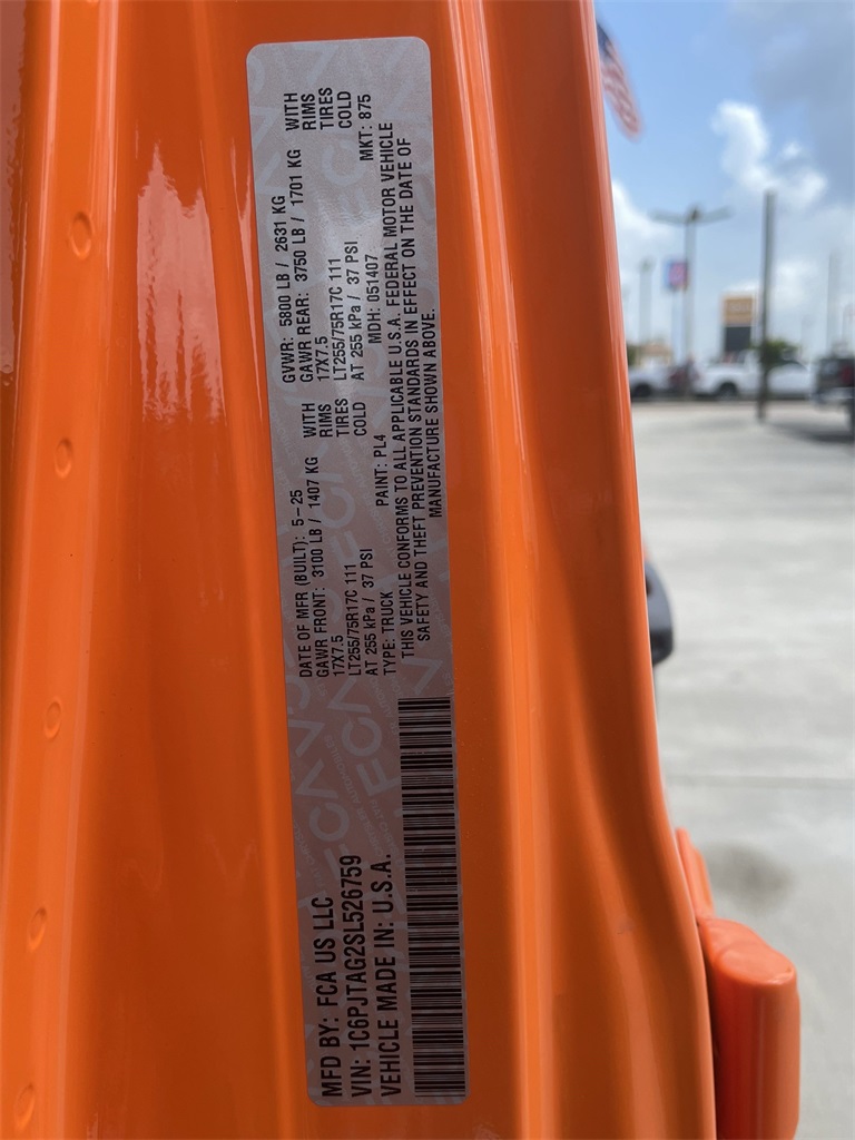 24W Willys (4-Wheel Drive Decal, Advanced Brake Assist, Air Conditioning w/Auto Temperature Control, Automatic Headlamps, Auxiliary Switches, Black Grille, Body Color Fender Flares (2-Piece), Class IV Receiver Hitch, Cluster 7.0" TFT Color Display, Daytime Running Lamps LED Accents, Deep Tint Sunscreen Windows, E-Locker Rear Axle, Enhanced Adaptive Cruise Control, Front Heavy Duty Red Accent Shock Absorbers, Front LED Fog Lamps, Full Speed Forward Collision Warning Plus, Heavy-Duty Engine Cooling, LED Premium Reflector Headlamps, LED Taillamps, Mold In Color Bumper w/Gloss Black, MOPAR All-Weather Slush Mats, Off-Road Plus Mode, Power Heated Mirrors, Premium Wrapped Steering Wheel, Protection Sill Rails, Rear Heavy Duty Red Accent Shock Absorbers, Security Alarm, Sun Visors w/Illuminated Vanity Mirrors, Trailer Hitch Zoom, Wheels: 17" x 7.5" Painted Black, Willys Hood Decal, and Willys Suspension), 110 MPH Vehicle Max Speed Calibration, 12.3" Touchscreen Display, 3.73 Rear Axle Ratio, 4-Wheel Disc Brakes, 4G LTE Wi-Fi Hot Spot, 8 Speakers, ABS brakes, Air Conditioning, Alexa Built-In, AM/FM radio: SiriusXM, Apple CarPlay, Apple CarPlay/Android Auto, Black 3-Piece Hard Top, Brake assist, Cloth Low-Back Bucket Seats, Compass, Connectivity - US/Canada, Delay-off headlights, Driver door bin, Driver vanity mirror, Dual front impact airbags, Dual front side impact airbags, Electronic Stability Control, Freedom Panel Storage Bag, Front anti-roll bar, Front Bucket Seats, Front Center Armrest w/Storage, Front fog lights, Front License Plate Bracket, Front reading lights, Google Android Auto, Illuminated entry, Integrated roll-over protection, Low tire pressure warning, Manufacturer's Statement of Origin, MOPAR Spray In Bedliner, Normal Duty Suspension, Occupant sensing airbag, Outside temperature display, Overhead airbag, Panic alarm, ParkView Rear Back-Up Camera, Passenger door bin, Passenger vanity mirror, Power steering, Power windows, Radio data system, Radio: Uconnect 5 w/12.3" Display, Rear anti-roll bar, Rear reading lights, Rear Sliding Window, Rear Window Defroster, Remote keyless entry, Speed control, Split folding rear seat, Steering wheel mounted audio controls, Tachometer, Telescoping steering wheel, Tilt steering wheel, Traction control, Trip computer, USB Host Flip, Variably intermittent wipers, Voltmeter, and Wheels: 17" x 7.5" Black Steel Styled. 2025 Jeep Gladiator Willys 4D Crew Cab Joose 17/22 City/Highway MPG Price includes: $2250 - 2025 National Bonus Cash . Exp. 01/05/2026 $500 - 2025 National 2025 Military Bonus Cash. Exp. 01/05/2026