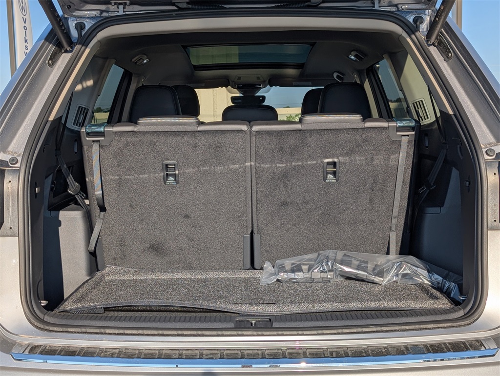 l, Brake assist, Bumpers: body-color, Compass, Delay-off headlights, Driver door bin, Driver vanity mirror, Dual front impact airbags, Dual front side impact airbags, Electronic Stability Control, Emergency communication system: VW Car-Net Safe & Secure 5-year, Exterior Parking Camera Rear, Four wheel independent suspension, four-wheel independent suspension, Front anti-roll bar, Front Bucket Seats, Front Center Armrest, Front dual zone A/C, Front fog lights, Front reading lights, Fully automatic headlights, Heads-Up Display, heated and Actively ventilated front bucket seats, Heated door mirrors, Heated front seats, Heated rear seats, Heated steering wheel, Illuminated entry, Low tire pressure warning, Memory seat, MIB3 discover media with navigation, Navigation System, Occupant sensing airbag, Outside temperature display, Overhead airbag, Overhead console, Panic alarm, Passenger door bin, Passenger vanity mirror, perforated vienna leather seating surfaces, Power door mirrors, Power driver seat, Power Liftgate, Power moonroof: Panoramic, Power passenger seat, Power steering, Power windows, Radio data system, Rain sensing wipers, Rear air conditioning, Rear anti-roll bar, Rear reading lights, Rear seat center armrest, Rear window defroster, Rear window wiper, Remote keyless entry, Security system, Speed control, Speed-sensing steering, Split folding rear seat, Spoiler, Steering wheel mounted audio controls, Tachometer, Telescoping steering wheel, Tilt steering wheel, Traction control, Trip computer, Turn signal indicator mirrors, Variably intermittent wipers, and Ventilated front seats. 2025 Volkswagen Atlas 2.0T SEL 4D Sport Utility Silver Price includes: $3500 - Retail Customer Bonus. Exp. 01/05/2026