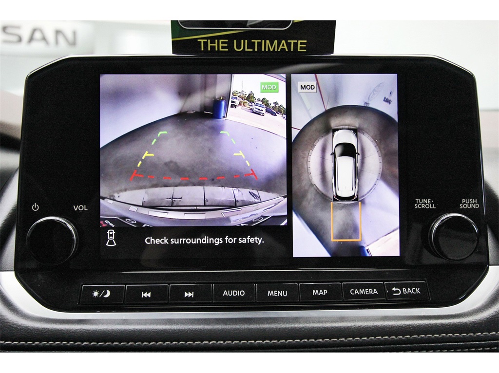 oy Wheels, 4-Wheel Disc Brakes, 5.604 Axle Ratio, 6 Speakers, ABS brakes, Air Conditioning, Alloy wheels, AM/FM Radio, AM/FM radio: SiriusXM, Auto High-beam Headlights, Auto-dimming Rear-View mirror, Automatic temperature control, Black Splash Guards (Set of 4), Brake assist, Bumpers: body-color, Chrome Rear Bumper Protector, Delay-off headlights, Driver door bin, Driver vanity mirror, Dual front impact airbags, Dual front side impact airbags, Electronic Stability Control, Emergency communication system: NissanConnect Services, First Aid Kit, Floor Mats w/2-Piece Cargo Area Protector, Four wheel independent suspension, Frameless Rearview Mirror w/Universal Remote, Front anti-roll bar, Front Bucket Seats, Front Center Armrest, Front dual zone A/C, Front reading lights, Fully automatic headlights, Heated door mirrors, Heated Front Bucket Seats, Heated front seats, Heated steering wheel, Illuminated entry, Illuminated Kick Plates, Knee airbag, Leather steering wheel, Leather-Appointed Seat Trim, Low tire pressure warning, Memory seat, NissanConnect featuring Apple CarPlay and Android Auto, Occupant sensing airbag, Outside temperature display, Overhead airbag, Overhead console, Panic alarm, Passenger door bin, Passenger vanity mirror, Power door mirrors, Power driver seat, Power Liftgate, Power moonroof, Power passenger seat, Power steering, Power windows, Radio data system, Rear anti-roll bar, Rear Parking Sensors, Rear reading lights, Rear seat center armrest, Rear side impact airbag, Rear window defroster, Rear window wiper, Remote keyless entry, Security system, Speed control, Speed-Sensitive Wipers, Split folding rear seat, Spoiler, Steering wheel mounted audio controls, Tachometer, Telescoping steering wheel, Tilt steering wheel, Traction control, Trip computer, Turn signal indicator mirrors, and Variably intermittent wipers!!