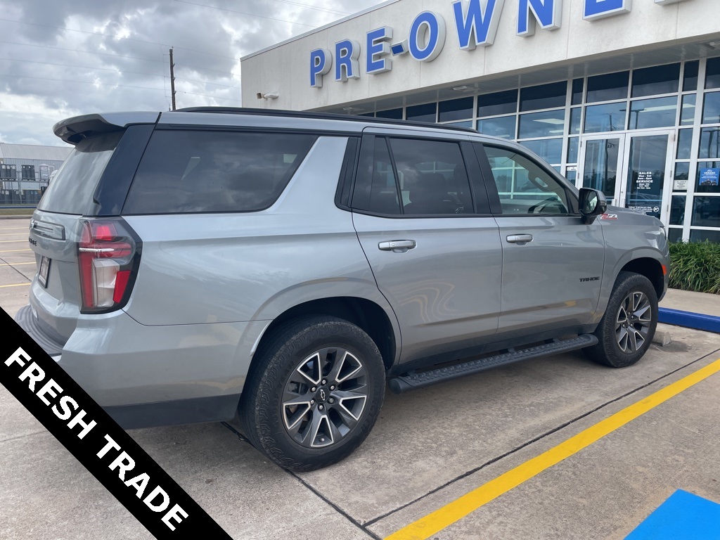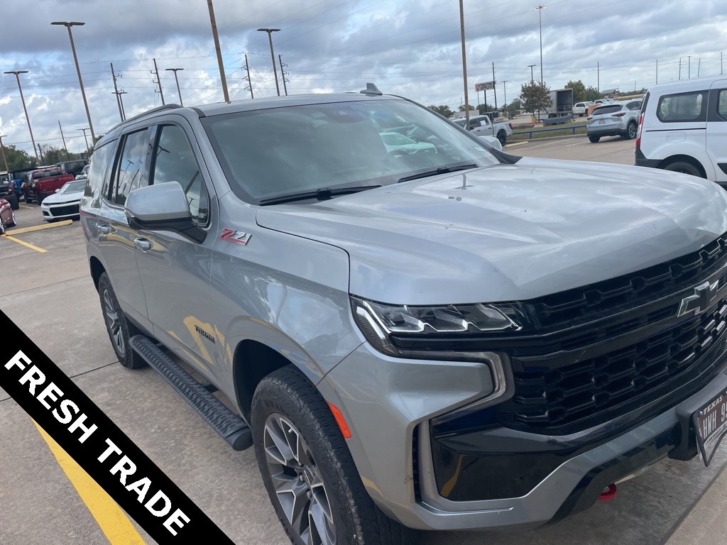 Recent Arrival! Clean CARFAX. Sterling Gray Metallic 2023 Chevrolet Tahoe Z71 4WD 10-Speed Automatic with Overdrive EcoTec3 5.3L V8 4WD, Gideon/Very Dark Atmosphere Leather. Advanced Trailering Package (Hitch Guidance w/Hitch View, Integrated Trailer Brake Controller, and Smart Trailer Integration Indicator), Driver Alert Package (Lane Change Alert w/Side Blind Zone Alert and Rear Cross Traffic Alert), License Plate Front Mounting Package, Luxury Package (2nd Row Pwr Release 60/40 Split-Folding