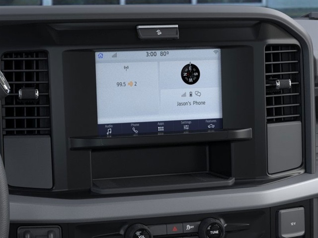 at, Color-Coordinated Full Carpet w/Floor Mats, LED Fog Lamps, Painted Grille, and Wheels: 18" Ebony Black Painted Aluminum), 4WD, 17" Argent Painted Steel Wheels, 190 Amp Alternator, 4-Wheel Disc Brakes, 6 Speakers, ABS brakes, Air Conditioning, AM/FM radio, AM/FM Stereo w/MP3 Player, Brake assist, Compass, Delay-off headlights, Dual front impact airbags, Dual front side impact airbags, Electronic Stability Control, Emergency communication system: SYNC 4 911 Assist, Exterior Parking Camera Rear, Front anti-roll bar, Front Center Armrest w/Storage, Front License Plate Bracket, Front reading lights, Fully automatic headlights, HD Vinyl 40/20/40 Split Bench Seat, Heated door mirrors, Illuminated entry, Low tire pressure warning, Outside temperature display, Overhead airbag, Overhead console, Panic alarm, Passenger vanity mirror, Platform Running Boards, Power door mirrors, Power steering, Power windows, Rear reading lights, Rear step bumper, Remote keyless entry, Security system, Speed control, Split folding rear seat, Steering wheel mounted audio controls, SYNC 4, Tachometer, Telescoping steering wheel, Tilt steering wheel, Traction control, Trailer Brake Controller, Trip computer, Turn signal indicator mirrors, Upfitter Switches (6), and Variably intermittent wipers. Recent Arrival!
