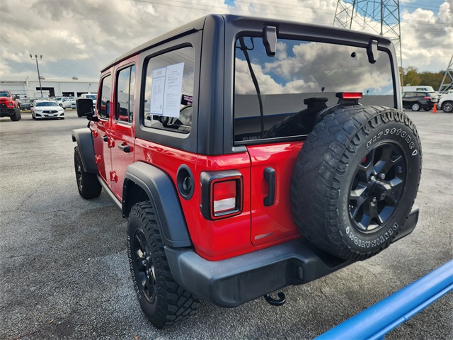CARFAX One-Owner. Firecracker Red Clearcoat 2022 Jeep Wrangler Unlimited Willys 4WD 8-Speed Automatic 2.0L I4 DOHC LOCAL TRADE, CARFAX 1 OWNER, CLEAN CARFAX, NON SMOKER, 4WD, KEYLESS ENTRY, AM/FM/HD RADIO, BLUETOOTH HANDS FREE CALLING, FRONT USB CHARGING PORTS, MP3 IPOD COMPATIBLE, AUTO HEADLIGHTS, DAYTIME RUNNING LIGHTS, 4-Wheel Drive Swing Gate Decal, 97 MPH Vehicle Max Speed Calibration, Anti-Spin Differential Rear Axle, Automatic Headlamps, Black Grille, Black Trail Rated Badge, Deep Tint Su