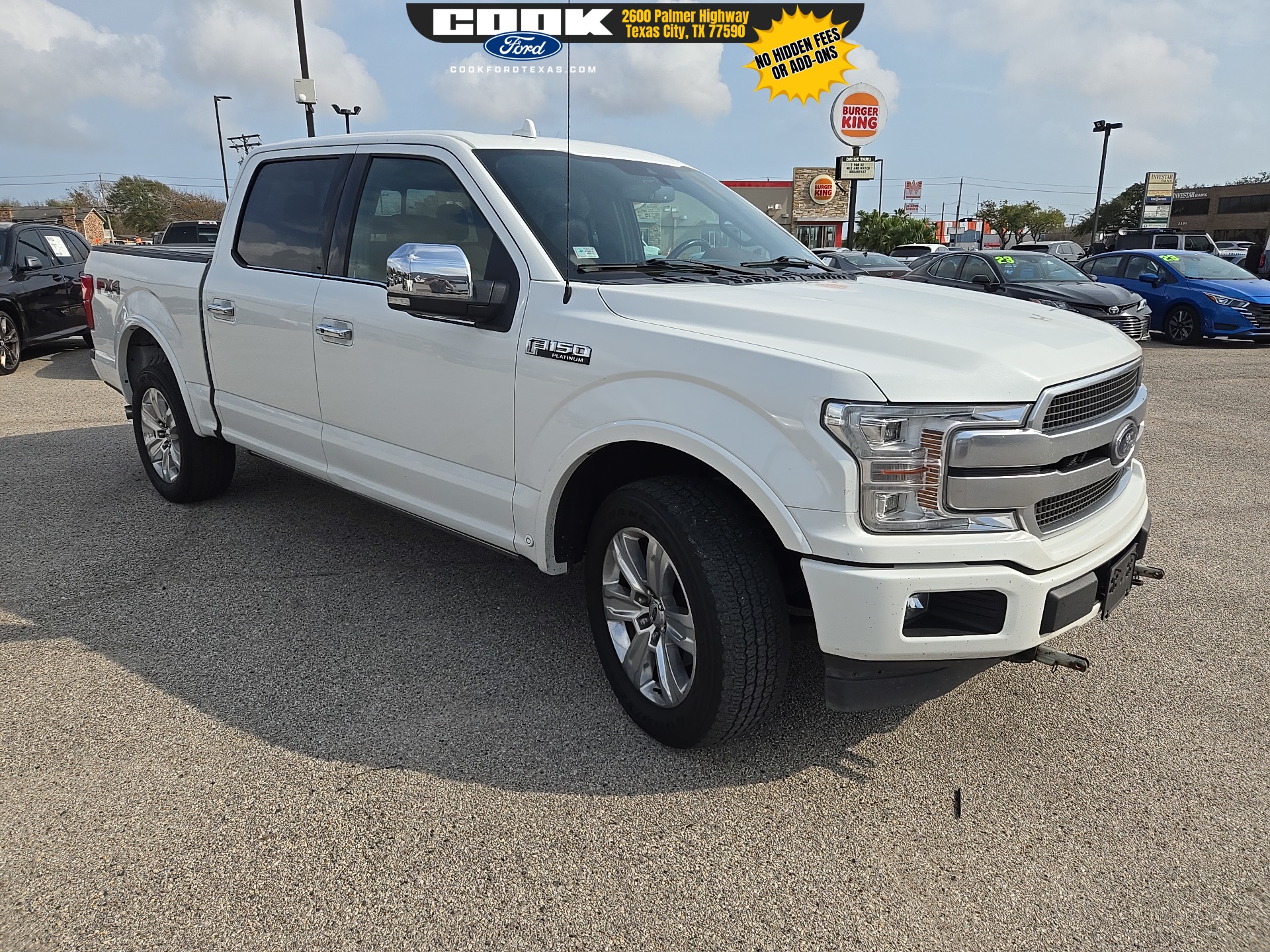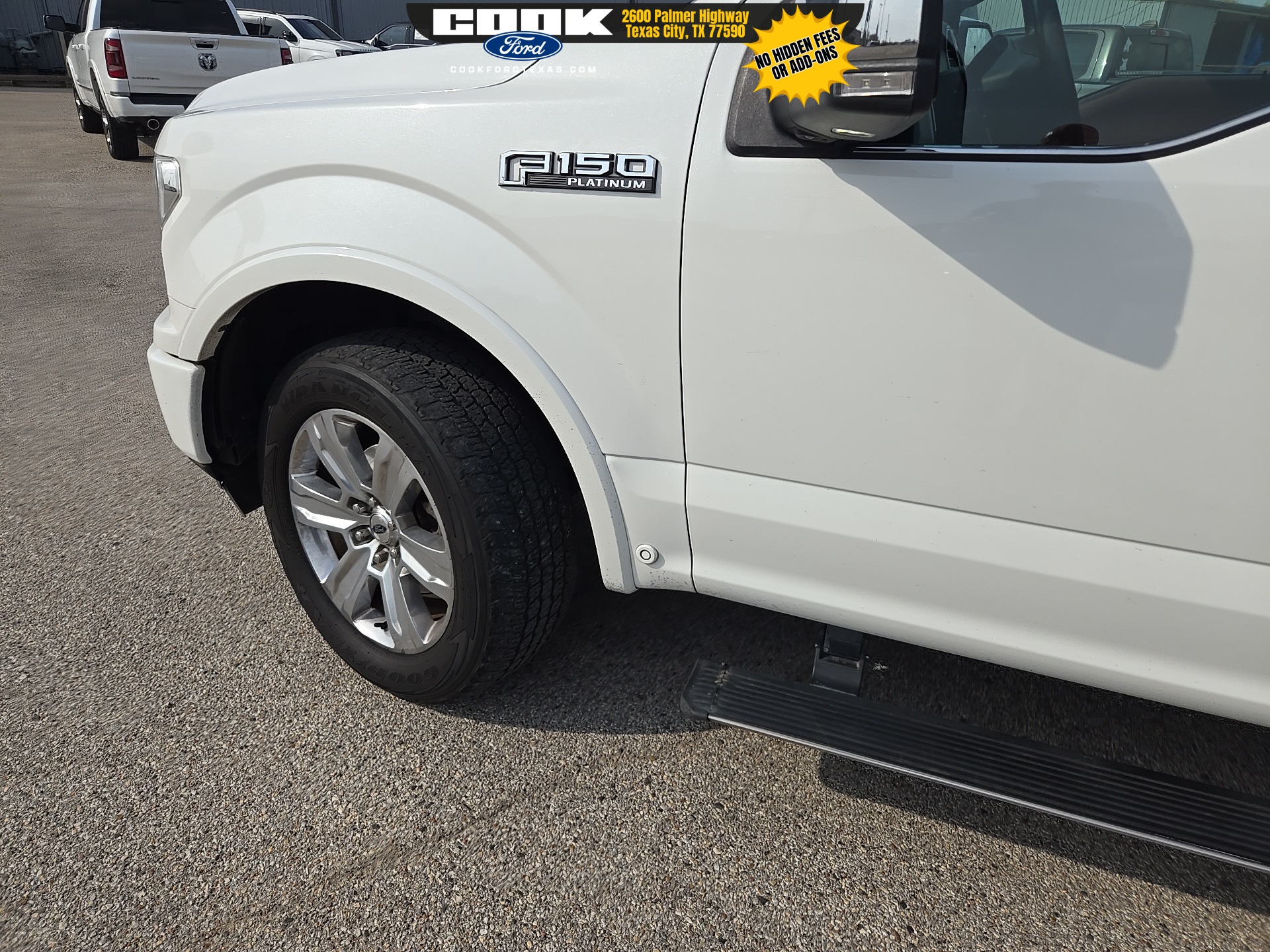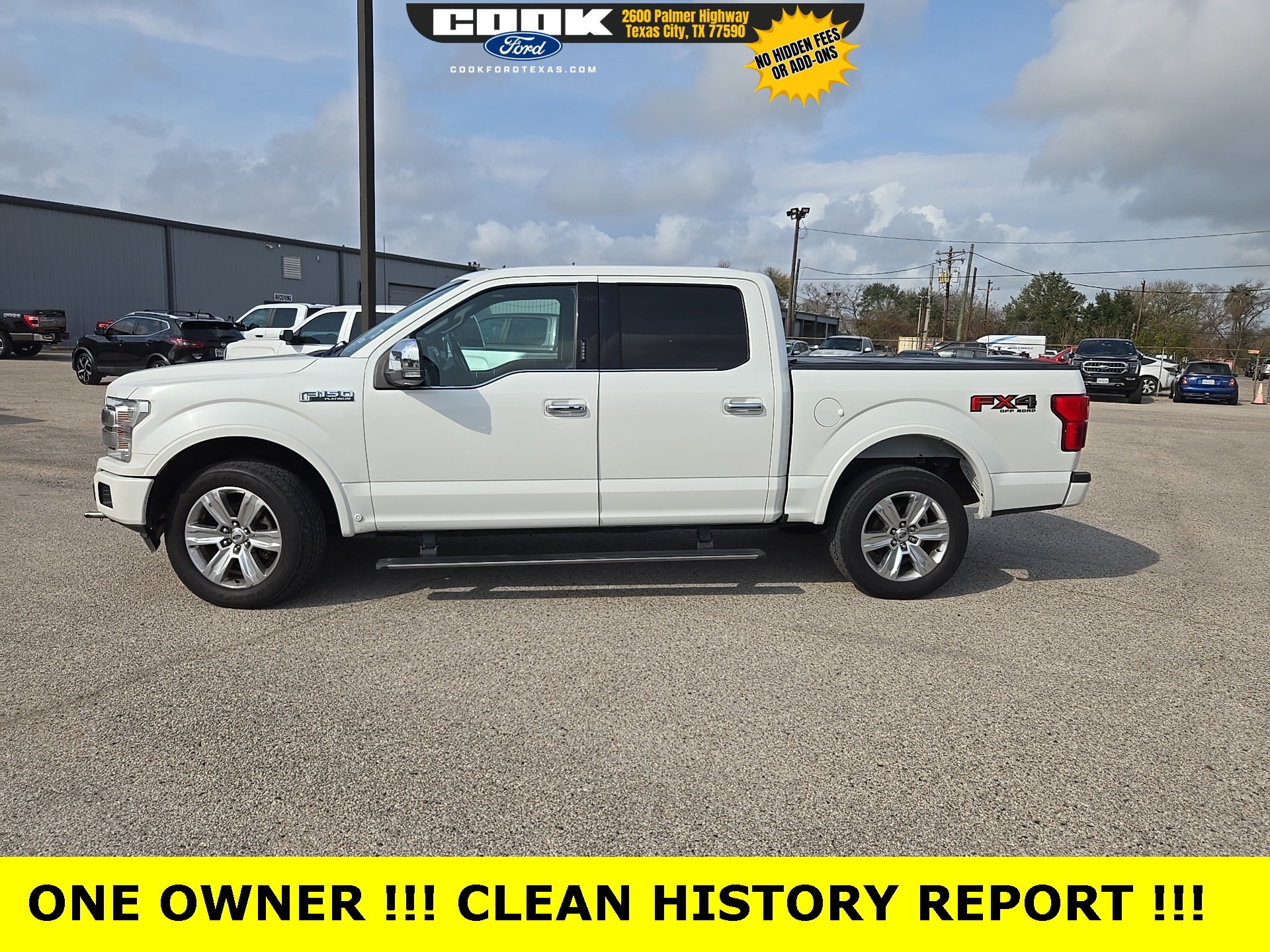 Certified. Star White Metallic Tri-Coat 2020 Ford F-150 Platinum 4WD 10-Speed Automatic 3.5L V6 EcoBoost 20" Polished Aluminum Wheels, 4x4 FX4 Off-Road Bodyside Decal, Class IV Trailer Hitch Receiver, Electronic Locking w/3.55 Axle