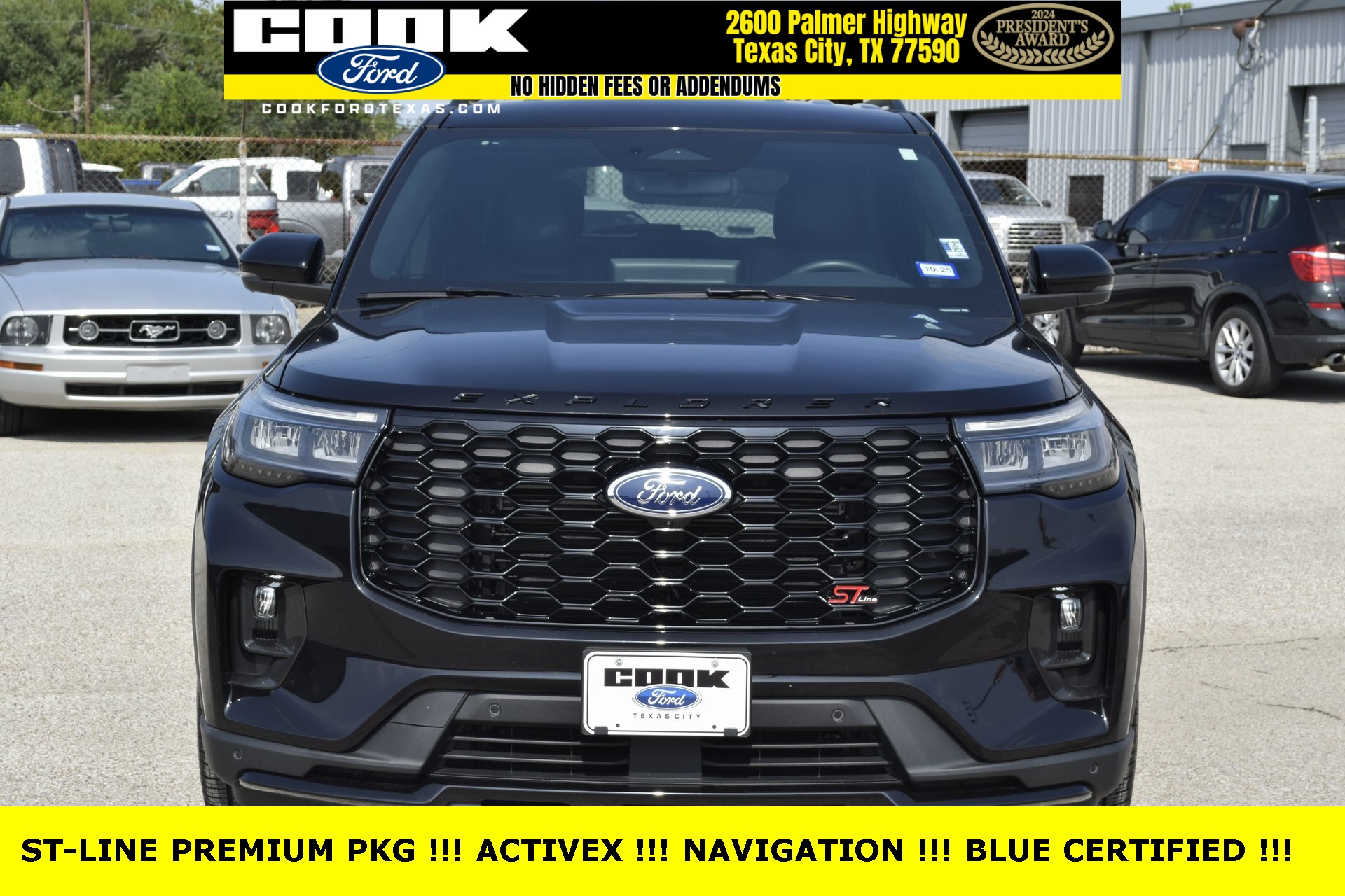 Certified. Agate Black Metallic 2025 Ford Explorer ST-Line RWD 10-Speed Automatic 2.3L EcoBoost I-4 110V/150W AC Power Outlet, 2nd Row Heated Seats, Ambient Lighting, Auto-Dimming Interior Rear-View Mirror, Equipment Group 300A Standard Package, Memory Driver's Seat, Navigation System, Performance Brakes, Power-Folding Sideview Mirrors w/Autofold, P