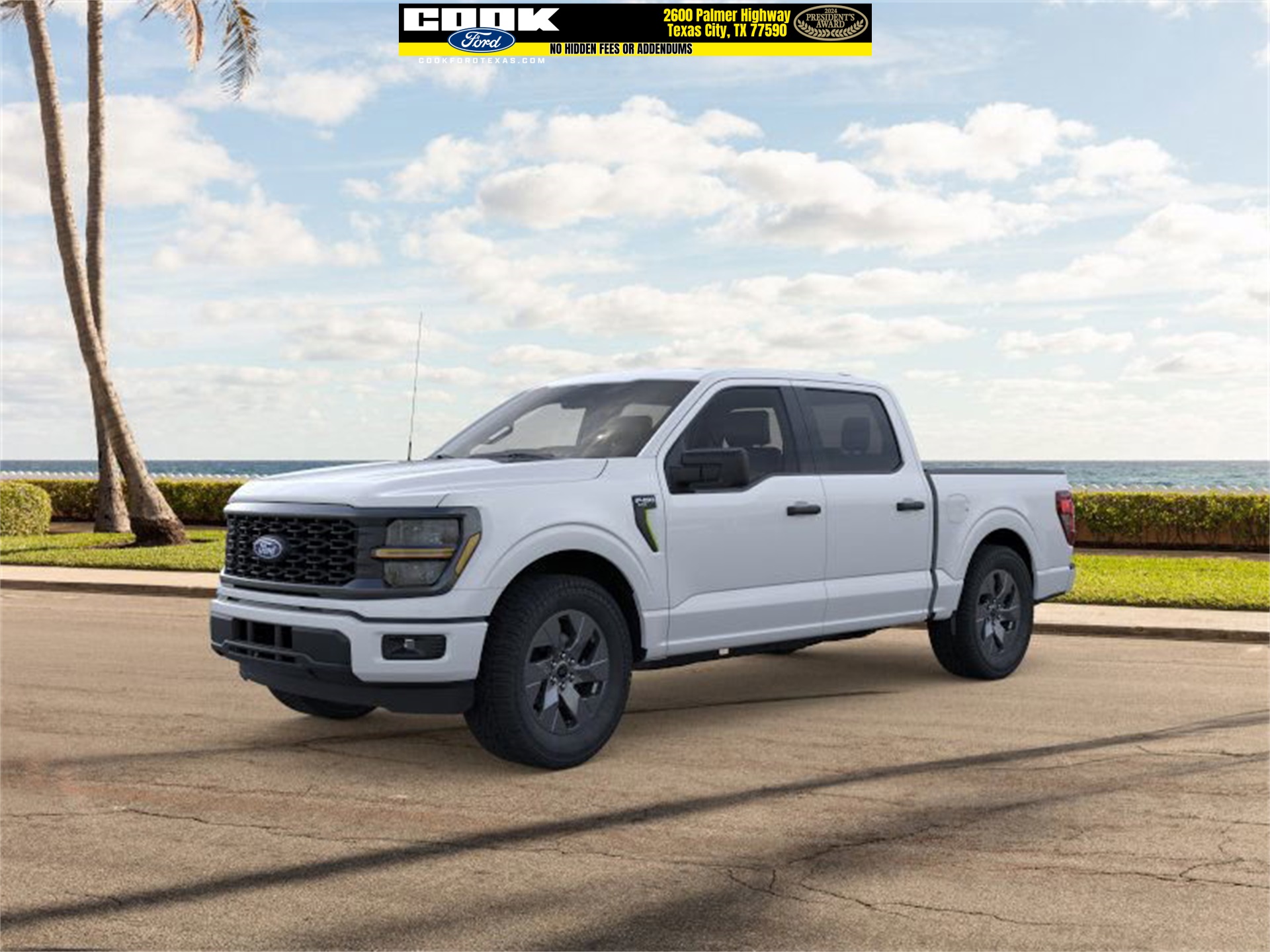 This 2025 Ford F-150 STX in White comes with the following features: 2.7L V6 EcoBoost 10-Speed Automatic RWD Equipment Group 200A Mid (LED Fog Lamps w/LED Cornering Lamp and Wheels: 20" Dark Gray w/Machined Aluminum), GVWR: 6,426 lbs Payload Package, 3.55 Axle Ratio, 4-Wheel Disc Brakes, 6 Speakers, ABS brakes, Air Conditioning, Alloy wheels, AM/FM radio: Si