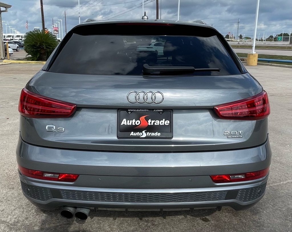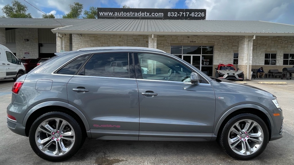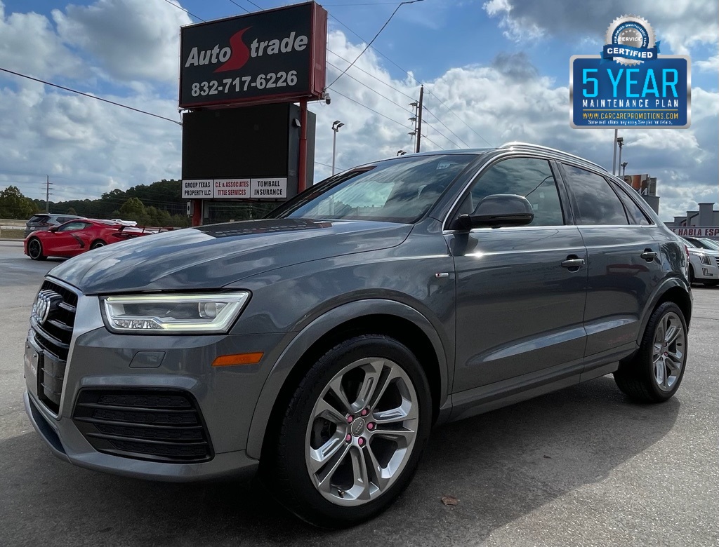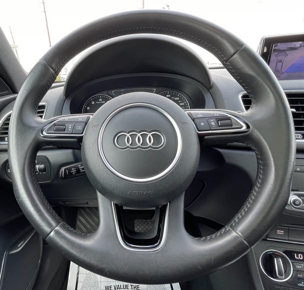 AUTOSTRADE is proud to present you with another True Market Priced Pre-Owned Vehicle. This 2016 Audi Q3 2.0T Prestige is loaded with the following Factory Options:10 Speakers, 4-Wheel Disc Brakes, ABS brakes, Air Conditioning, Alloy wheels, AM/FM radio, Auto-dimming Rear-View mirror, Automatic temperature control, Axle Ratio: TBD, Brake assist, Bumpers: body-color, CD player, Compass, Delay-off headlights, Driver door bin, Driver vanity mirror, Dual front impact airbags, Dual front side impact airbags, Electronic Stability Control, Exterior Parking Camera Rear, Four wheel independent suspension, Front anti-roll bar, Front Bucket Seats, Front Center Armrest, Front dual zone A/C, Front fog lights, Front reading lights, Fully automatic headlights, Heated Front Seats, Heated front seats, High intensity discharge headlights: Xenon plus, Illuminated entry, Leather Seating Surfaces, Leather Shift Knob, Leather steering wheel, Low tire pressure warning, Occupant sensing airbag, Outside temperature display, Overhead airbag, Overhead console, Panic alarm, Passenger door bin, Passenger vanity mirror, Power door mirrors, Power driver seat, Power moonroof, Power passenger seat, Power steering, Power windows, Radio data system, Radio: Audi Concert, Rain sensing wipers, Rear anti-roll bar, Rear fog lights, Rear reading lights, Rear seat center armrest, Rear window defroster, Rear window wiper, Remote keyless entry, Roof rack: rails only, Security system, Speed control, Speed-sensing steering, Split folding rear seat, Spoiler, Steering wheel mounted audio controls, Tachometer, Telescoping steering wheel, Tilt steering wheel, Traction control, Trip computer, Turn signal indicator mirrors, Variably intermittent wipers, and Wheels: 7.0" x 18" 5-Arm Turbine Design.