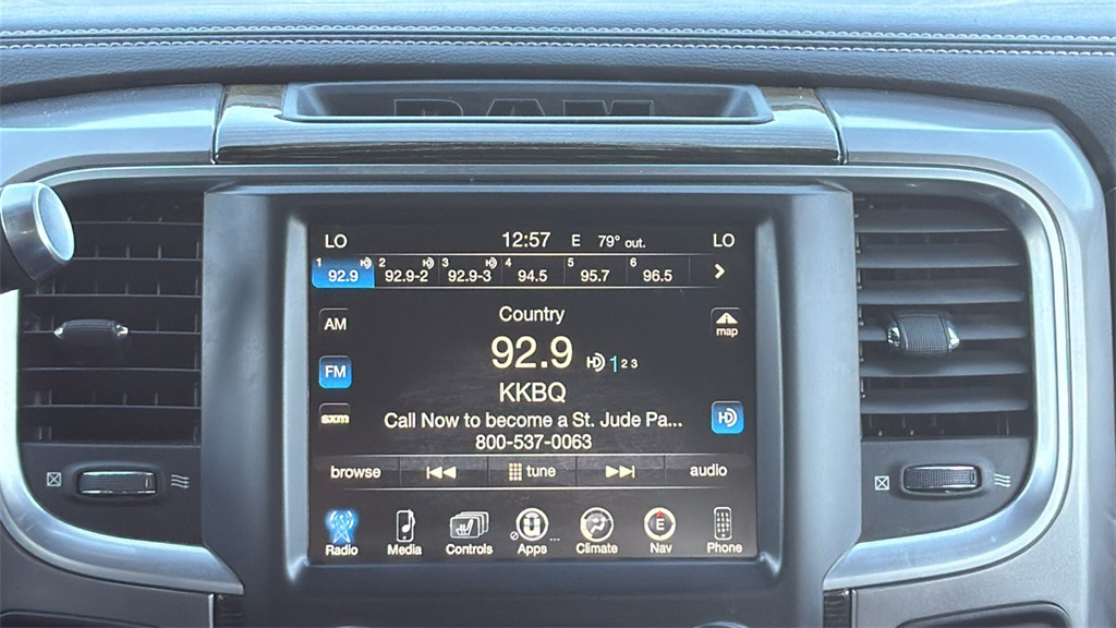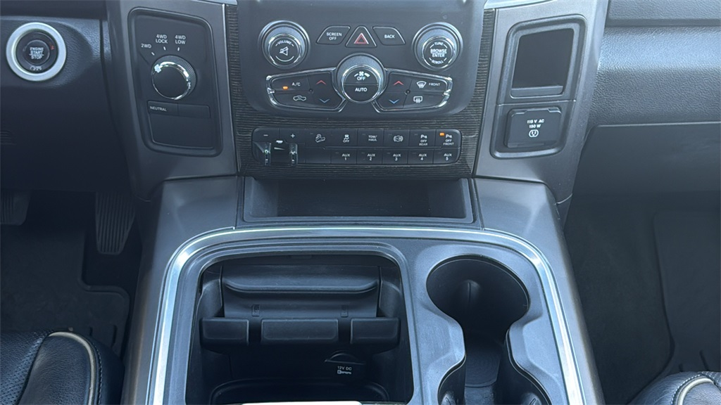 ge (Front Performance Tuned Shock Absorbers, Hill Descent Control, Offroad Decal, Rear Performance Tuned Shock Absorbers, and Tow Hooks), Quick Order Package 2FM Limited (115V Auxiliary Power Outlet, 4 Adjustable Cargo Tie-Down Hooks, Auto High Beam Headlamp Control, Bed Cargo Divider/Extender, Body Color Fender Flares, Bucket Seats, Chrome Belt Moldings, Chrome Grille w/RAM Letters, Chrome RAM Tailgate Nameplate, Folding Flat Load Floor Storage, Heated Second Row Seats, Heated Steering Wheel, High Back Seats, Instrument Cluster w/Display Screen, Keyless Enter-N-Go, Laramie Limited Leather Bucket Seats, Leather Wrapped Grab Handle, LED Bed Lighting, Limited Chrome Bodyside Molding, Limited Decor Group, Limited Tailgate Applique 4x4, Locking Tailgate, Luxury Door Trim Panel, Luxury Front & Rear Floor Mats, Painted Front Bumper, Painted Rear Bumper, Power 10-Way Memory Driver & 6-Way Passenger Seats, Power Lumbar Adjust, Rain Sensitive Windshield Wipers, RAM 2500 Badge, RamBox Cargo Management System, Rear 60/40 Split Folding Seat, Remote Proximity Keyless Entry, Steering Wheel Mounted Audio Controls, Vendor Painted Cargo Box Tracking, Ventilated Front Seats, Wheel to Wheel Side Steps, Wheels: 20" x 8.0" Satin Carbon w/Chrome Insert, and Wood/Leather Wrapped Steering Wheel), 10 Speakers, 180 Amp Alternator, 4-Wheel Disc Brakes, 5th Wheel/Gooseneck Towing Prep Group, ABS brakes, Adjustable pedals, Air Conditioning, Alloy wheels, AM/FM radio: SiriusXM, Anti-Spin Differential Rear Axle, Audio memory, Auto-dimming door mirrors, Auto-dimming Rear-View mirror, Automatic temperature control, Brake assist, Center Hub, Chrome Exterior Mirrors, Compass, Delay-off headlights, Driver door bin, Driver vanity mirror, Dual front impact airbags, Dual front side impact airbags, Electronic Stability Control, Electronically Controlled Throttle, Emergency communication system: Uconnect Access, Exterior Mirrors Courtesy Lamps, Exterior Mirrors w/Heating Element, Exterior Mirrors w/Memory, Exterior Mirrors w/Supplemental Signals, Front anti-roll bar, Front Bucket Seats, Front Center Armrest w/Storage, Front dual zone A/C, Front fog lights, Front reading lights, Fully automatic headlights, Garage door transmitter, Genuine wood console insert, Genuine wood dashboard insert, Genuine wood door panel insert, Heated door mirrors, Heated Front Seats, Heated front seats, Heated rear seats, Heated steering wheel, Hemi Badge, I/P Mounted Auxiliary Switches, Illuminated entry, Leather steering wheel, Low tire pressure warning, Memory seat, Navigation System, Next Generation Engine Controller, Occupant sensing airbag, Outside temperature display, Overhead airbag, Overhead console, Panic alarm, ParkView Rear Back-Up Camera, Passenger door bin, Passenger vanity mirror, Pedal memory, Power door mirrors, Power driver seat, Power Folding Chrome Trailer Tow Mirrors, Power Folding Mirrors, Power passenger seat, Power steering, Power windows, Premium Filigree Leather Seats, Radio data system, Radio: Uconnect 3C Nav w/8.4" Display, RamBox Delete, Rear seat center armrest, Rear step bumper, Remote keyless entry, Security system, Speed control, Split folding rear seat, Steering wheel mounted audio controls, Tachometer, Tilt steering wheel, Tip Start, Traction control, Trailer Tow Mirrors, Tri-Fold Tonneau Cover, Trip computer, Turn signal indicator mirrors, Variably intermittent wipers, Ventilated front seats, Voltmeter, and Wheels: 18" x 8.0" Aluminum w/Walnut Pockets. 2017 Ram 25